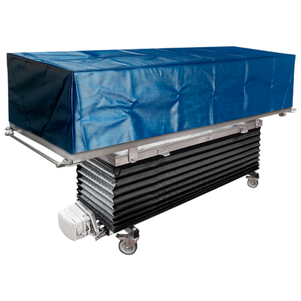 The covered body carrier is designed for body conveyance, reducing the operator’s back strain while providing ease of steering and controlled movement of the corpse. This version ensures privacy with its upper cover, which is ideal for maintaining dignity during transportation.